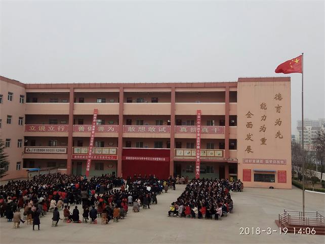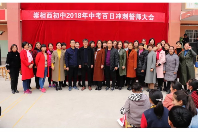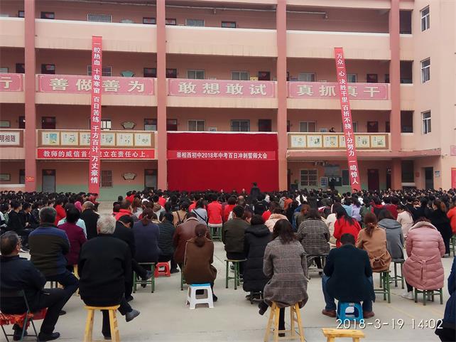 3月19日下午2:00點(diǎn),"奮斗百日,圓夢(mèng)中考" 2018年中考百日誓師大會(huì)在崇相西初中教學(xué)樓廣場(chǎng)舉行,蔡建功校長(zhǎng),楊飛副校長(zhǎng),劉曉冰副校長(zhǎng),齊永龍副校長(zhǎng)和全校師生及九年級(jí)部分特邀家長(zhǎng)代表參加了會(huì)議。大會(huì)由政教主任崔瑞蓉老師主持。
