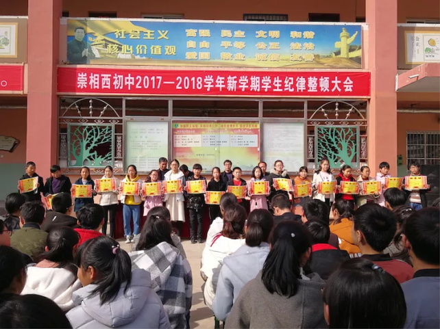 會上,齊校長首先組織學(xué)生認真學(xué)習(xí)《崇相西初中學(xué)生一日行為規(guī)范》,從早起至晚睡,從教室到宿舍,方方面面詳規(guī)定,點點滴滴談做法,要求學(xué)生崇尚文明,杜絕陋習(xí),遵規(guī)守紀,愛護公物。他重點強調(diào)了學(xué)生******教育工作,并先后讓多名學(xué)生在臺上現(xiàn)身說法,一件件傷害案例就在眼前,一幕幕疼痛悲劇就在身邊,孩子的講述讓大家極為震撼,也因此深深懂得了遵守規(guī)矩的重要性,改掉壞習(xí)慣刻不容緩,惡小若為之傷害大大。同時齊校長還安排了我校前兩周學(xué)生紀律整頓的工作重點,即杜絕零食進校園和保障學(xué)生就餐秩序良好,他要求所有領(lǐng)導(dǎo)及班主任全部跟蹤督查,做到對接無縫隙,檢查無死角。楊校長對課堂紀律提出三方面的要求,重點查處學(xué)生上課遲到、睡覺和閑聊。他還在大會上表彰了期末考試的190名******學(xué)生和參加縣賽的50位******運動員,并為他們頒發(fā)了獎狀和獎品。
