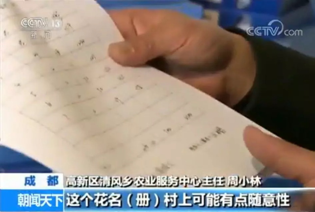 成都高新區(qū)清風(fēng)鄉(xiāng)農(nóng)業(yè)服務(wù)中心主任 周小林:是真實的。這個花名冊村上可能有點隨意性。他把面積看夠了,回去再分。