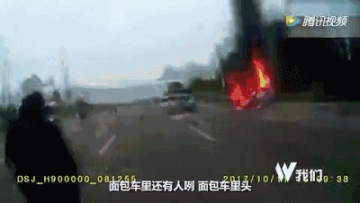 兩車發(fā)生嚴(yán)重碰撞起火。