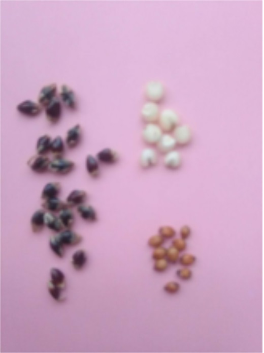野高粱的籽粒比栽培高粱小得多。從圖3可以看出,帶殼的野高粱種子不如高粱米大,去殼后與谷子差不多。這哪是糧食?完全是草籽!從表1可以看出,它們的植株矮小,******的是4號,才162 cm,那棵“袖珍苗”(還不是***小的)只有46 cm。