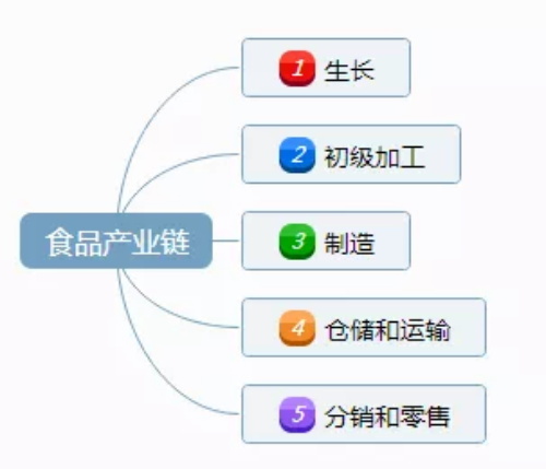 隨著分工越來越精細(xì),食品產(chǎn)業(yè)鏈越來越長。它大致可分為五個環(huán)節(jié):