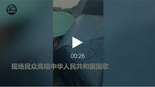 市民們高聲唱響中華人民共和國(guó)國(guó)歌。