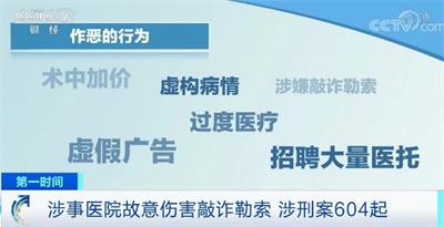 目前所涉及的刑事案件有604起,涉嫌的罪名是詐騙罪、敲詐---、故意傷害罪等。說是一家醫(yī)院,但是卻做起虛構病情、過度醫(yī)療、術中加價等違法行為,這已經完全不是一家醫(yī)院應該做的事了。