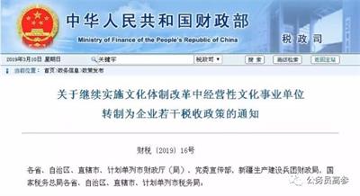 去年3月財(cái)政部、稅務(wù)總局、中央宣傳部就聯(lián)合發(fā)布通知,指出經(jīng)營(yíng)性文化事業(yè)單位轉(zhuǎn)制為企業(yè),可以享受稅收優(yōu)惠政策,鼓勵(lì)轉(zhuǎn)為企業(yè)。