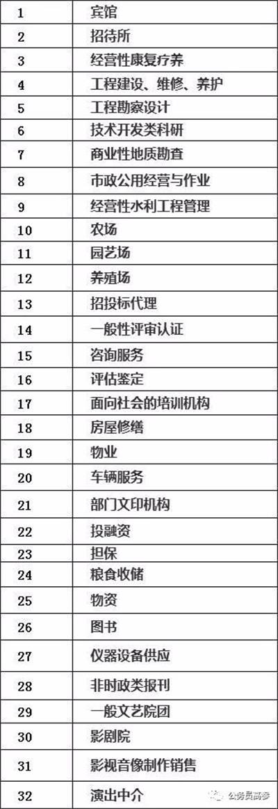 ⑤社會(huì)經(jīng)濟(jì)服務(wù)類:人才交流服務(wù),人防工程管護(hù),對(duì)外交流服務(wù),種苗良種培育,混合經(jīng)營(yíng)型林場(chǎng),準(zhǔn)公益性水利工程管理,公益性地質(zhì)勘查,實(shí)行有償服務(wù)的農(nóng)業(yè)技術(shù)推廣等。