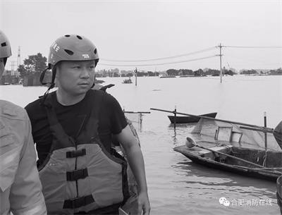 安徽省合肥市廬江縣消防救援大隊政治教導(dǎo)員陳陸在搜救被困群眾時,