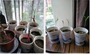 接下來就是“種”。沒有試驗田咋種?我忽然想起用飲水紙杯來“種”。也許有人會笑話我,沒見過在“紙杯里還能種高粱”!其實,這正是我向專業(yè)農科工作者學習的。