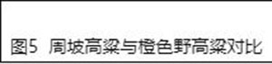 圖5左邊就是周坡高粱,株高3.5m,右邊是2020年在公園大門口發(fā)現(xiàn)的野生高粱,株高1.8m,無分蘗、莖稈粗、葉片寬,也許它符合某些專家的標準;可是我不敢確認,懷疑可能是游人把外面的高粱種子撒落在公園里。***后長出穗子,根本不是真高粱,籽粒呈橙色。請看下面是種子比較:周坡的種子還沒有野生的大。