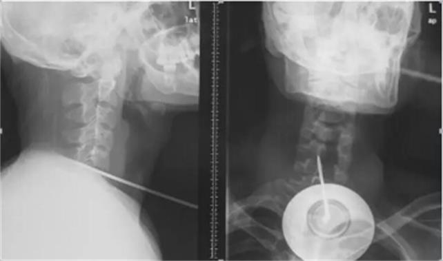 2月13日凌晨3時(shí),上海長(zhǎng)征醫(yī)院上演了一場(chǎng)真實(shí)版的“生死時(shí)速”。一根長(zhǎng)約17厘米的鋼針從患者頸部正中穿入氣管、食管,通過椎體,貫穿脊髓,直達(dá)后路椎板穿出,生命危在旦夕。海軍軍醫(yī)大學(xué)長(zhǎng)征醫(yī)院多科專家聯(lián)手合作,緊急手術(shù),展開了一場(chǎng)驚心動(dòng)魄的生死大援救,成功拔出了奪命鋼針。術(shù)后第二天,患者癱瘓的右側(cè)上下肢功能明顯恢復(fù)。