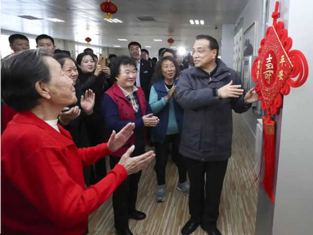 李克強牽掛困難群眾生活。他來到待改造的棚戶區(qū),傾聽居民們反映生活中的困難,叮囑隨行部門要對困難群眾情況再進(jìn)行篩查,落實好保障措施,對有特殊困難的要給予臨時救助。在縣福利院,李克強為老人們送上新衣服,并掛上“?!薄皦邸敝袊Y(jié)向老人們拜年。李克強說,敬老愛老是中華民族美德。老年人辛苦一生,為******和家庭都付出很多。要匯聚政府、社會和家庭等各方力量,讓老人們安享晚年。